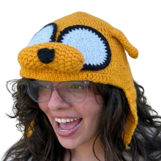 Crochet Jake the Dog Inspired Character Hat | Cartoon Cosplay Beanie for Kids & Adults | Sizes Newborn to Adult | Jake