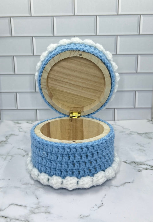 Add a touch of charm and whimsy to your storage with our Crochet Trinket Jewelry Boxes Collection. Each piece in this handmade collection features a sturdy wooden base paired with a lovingly crocheted top—designed to look like your favorite treats, florals, or seasonal themes. From sweet cake-inspired designs to cozy textured finishes, these boxes are as delightful to display as they are useful.