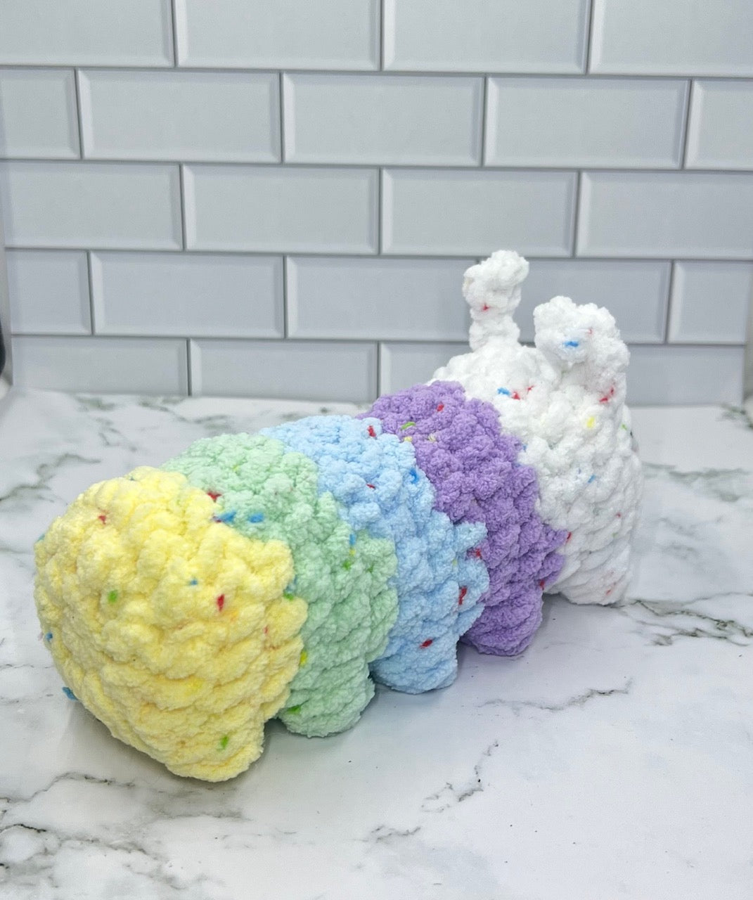 Meet your new squishy sidekick! This adorable pastel caterpillar is handmade with ultra-soft chenille yarn in a gentle rainbow of soothing colors. Each segment is plush and cuddly, perfect for little hands or as a comforting decor piece. Whether you're gifting it to a child, decorating a nursery, or just need a cheerful companion, this caterpillar brings warmth and whimsy to any space. Lightweight, huggable, and irresistibly soft—this pastel critter is sure to crawl right into your heart!